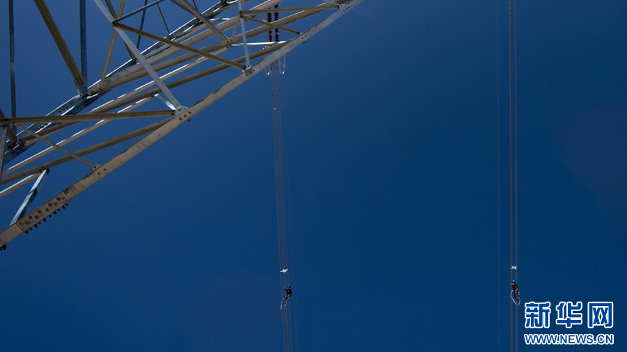在缺氧、风向多变的恶劣环境下,检修人员需要缜密的观察预判和超凡的勇气毅力。新华社记者 张宏祥 摄