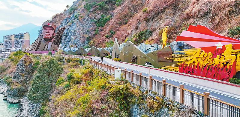 泸定县委常委、宣传部部长王顺苏介绍,2021年,泸定县将勇士路改造纳入飞夺泸定桥核心展示园一期建设范围,实施山体修复、边坡治理等工程,并推出一组“飞夺泸定桥雕塑群”。这组雕塑全长400米,提取1935年、240里、22位勇士、13根铁索等元素,展现红四团昼夜急行军240里、飞夺泸定桥这一史实。