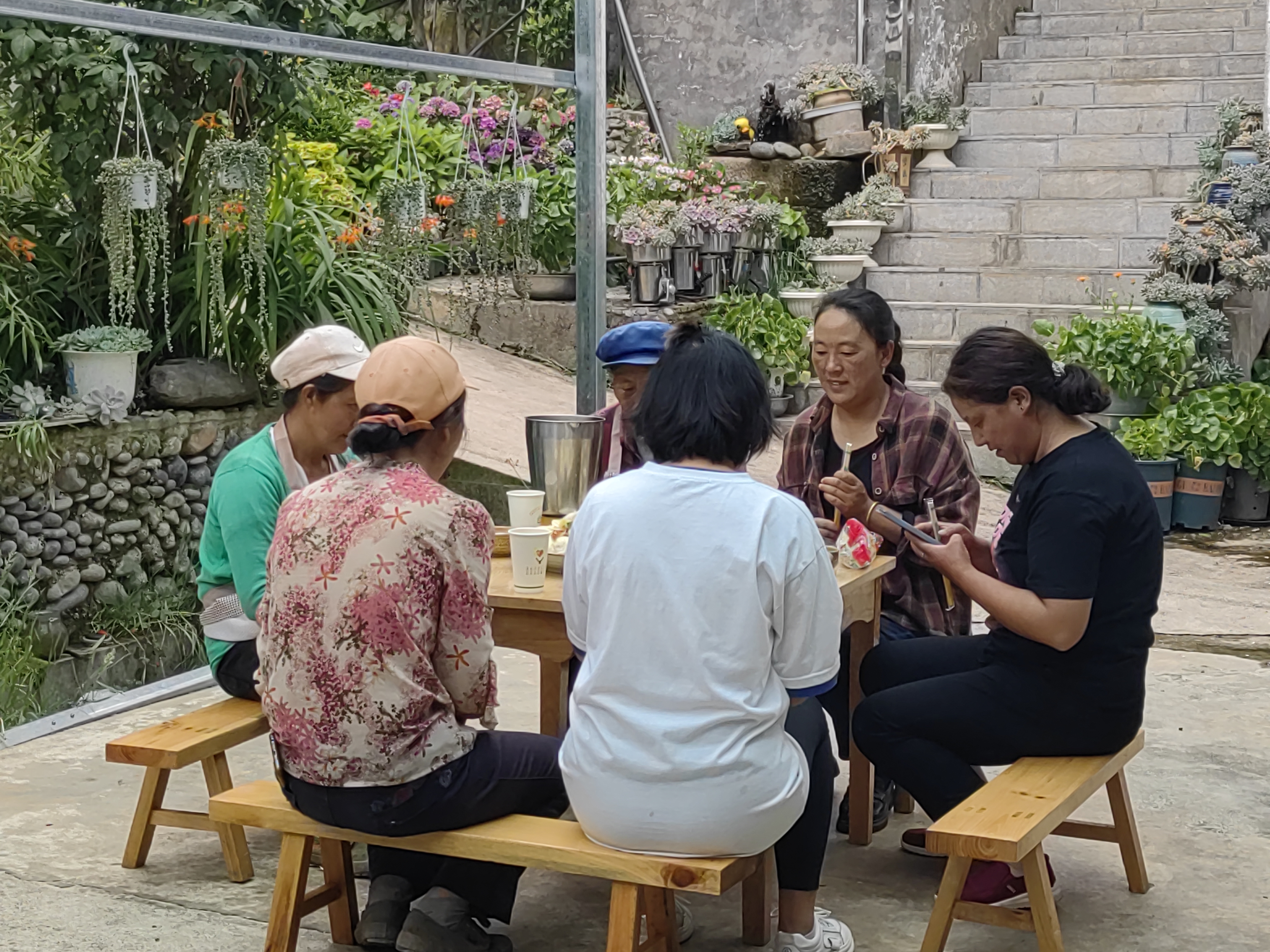 在花园箐村民小组,有这样一群姐妹,她们一起养鸡、种菜、开办农家乐,秉持着“风险共担、共负盈亏”的创业模式,依托优越的地理位置、独特的自然环境和浓厚的民族团结氛围,使得农家乐自开业后便吸引了许多居民、游客来游玩。