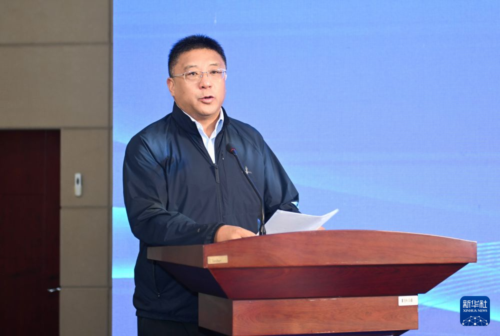 玉树藏族自治州州委书记蔡成勇在签约仪式上致辞。新华社记者 张龙 摄