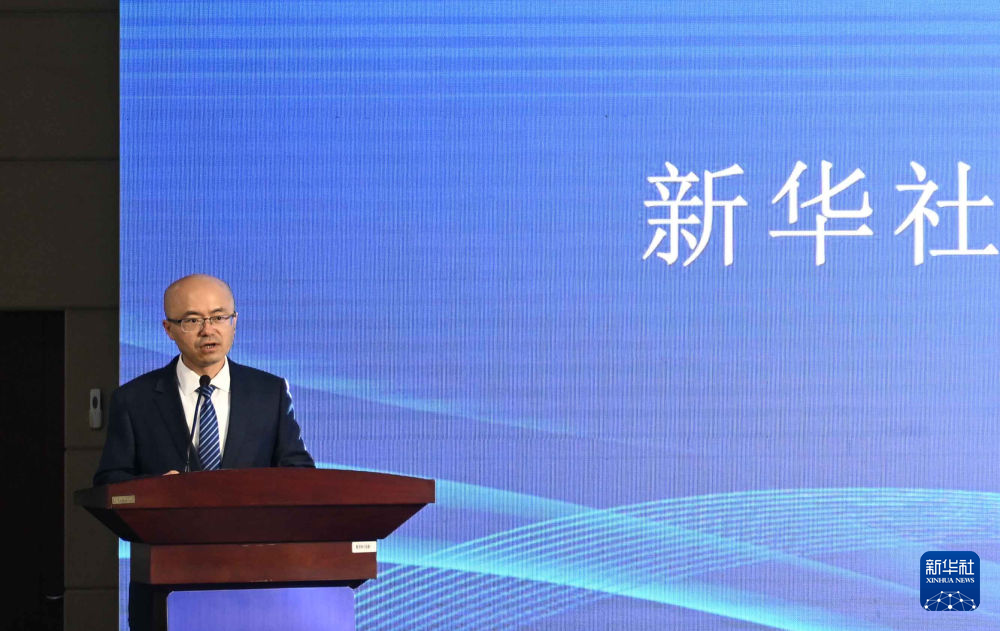 新华社青海分社分党组书记、社长黄豁在签约仪式上致辞。新华社记者 张龙 摄