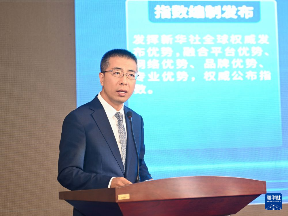 中国经济信息社指数事业部主任曹占忠介绍新华指数项目。新华社记者 张龙 摄