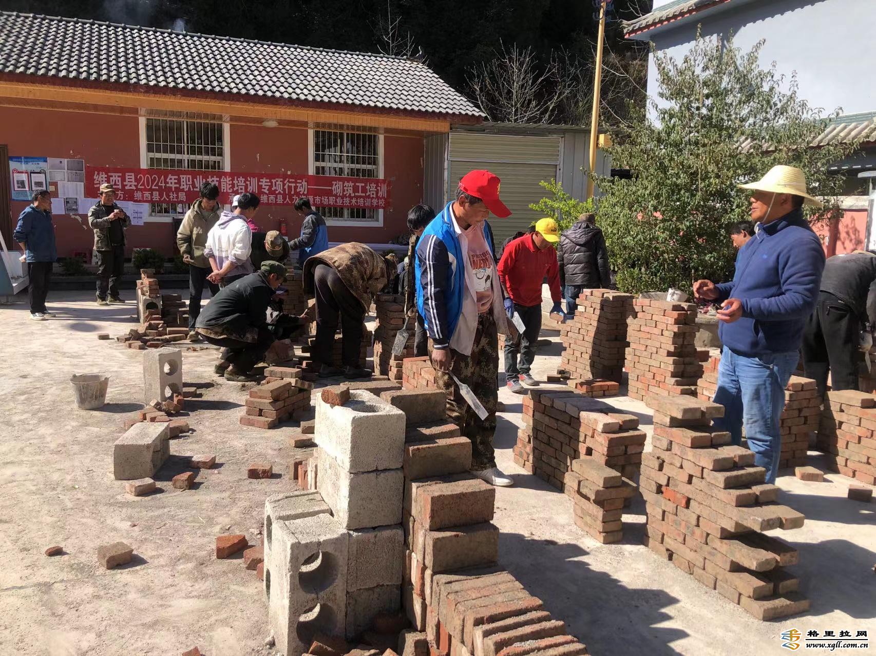 据悉,今年,维西县人社局把职业技能培训作为工作重点,将面向维西县外出务工返乡劳动力、有就业能力和就业意愿的农村劳动力群体开展职业技能培训,提升就业水平和职场竞争能力。图为参训人员正在学习砌砖。(张燕 摄)