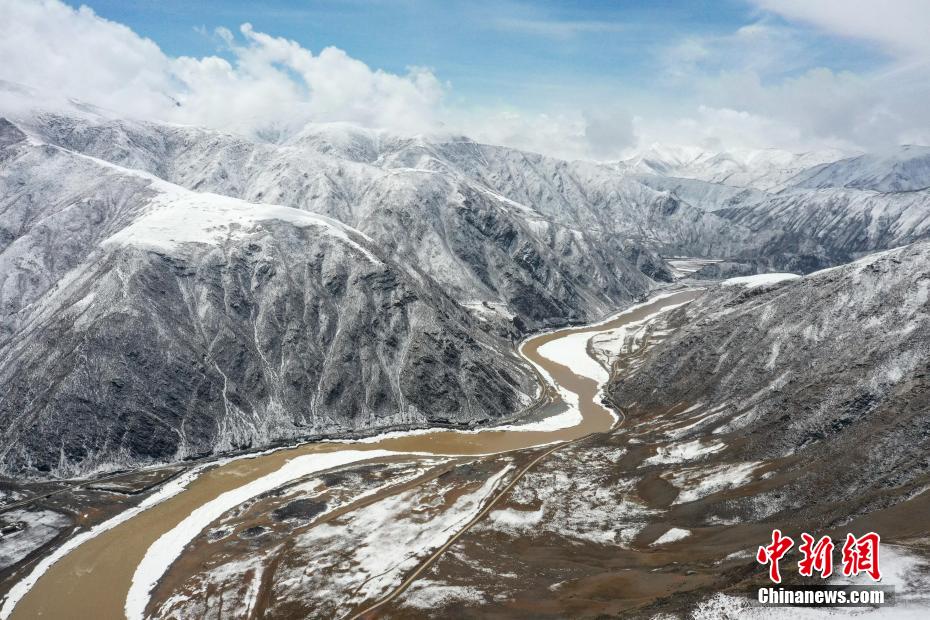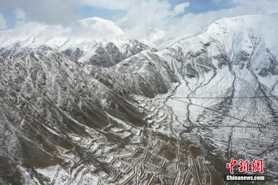 图为航拍青海省玉树藏族自治州称多县雪景,尽显山河壮丽。马铭言 摄