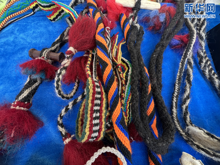 马肚带(彩色)和套牛绳(黑色)。新华网 鱼昊 摄