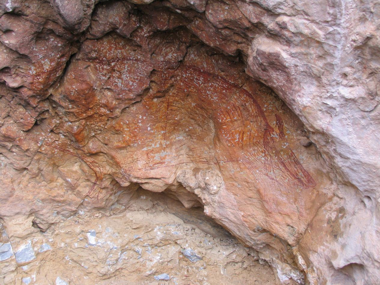 金沙江岩画分布范围广,数量众多,内容丰富多彩,表现形式独特,已成为一个完整的体系,在我国岩画类型中独树一帜。金沙江岩画多绘于金沙江沿岸人迹罕至的岩厦和岩洞的石壁上,内容有野牛、野羊、鹿、猴、人物及一些抽象的图案和符号,其中绝大多数为野生动物。岩画的技法主要有彩绘和凿刻两种,彩绘岩画占绝大数,其颜色多为红色,兼有黄、白、黑等色。
