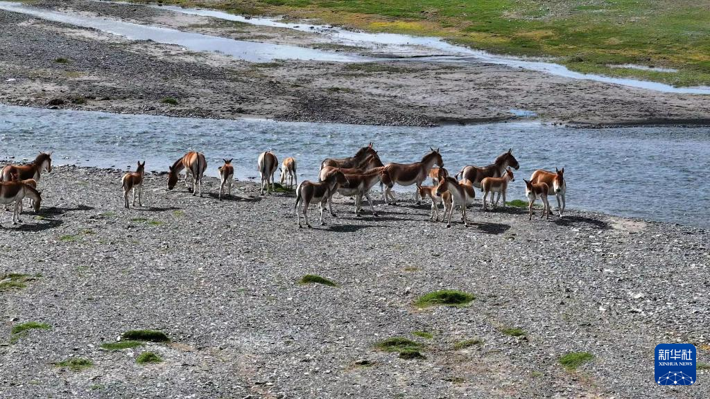 这是8月9日在位于三江源国家公园长江源园区的曲麻莱县境内拍摄的藏野驴(无人机照片)。 新华社发(昂江 摄)