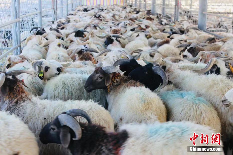 图为几百只牛羊正在等待过秤、检疫、消杀。希日尖措 摄
