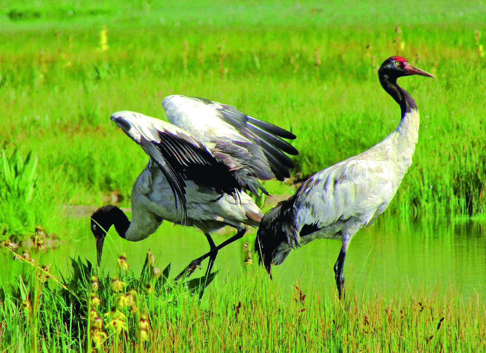 隆宝滩黑颈鹤翩翩起舞。