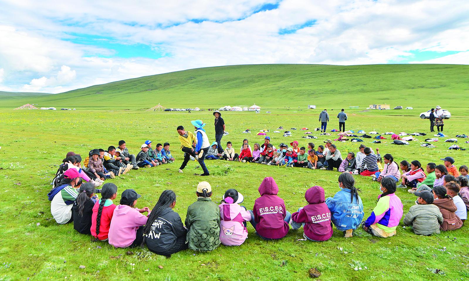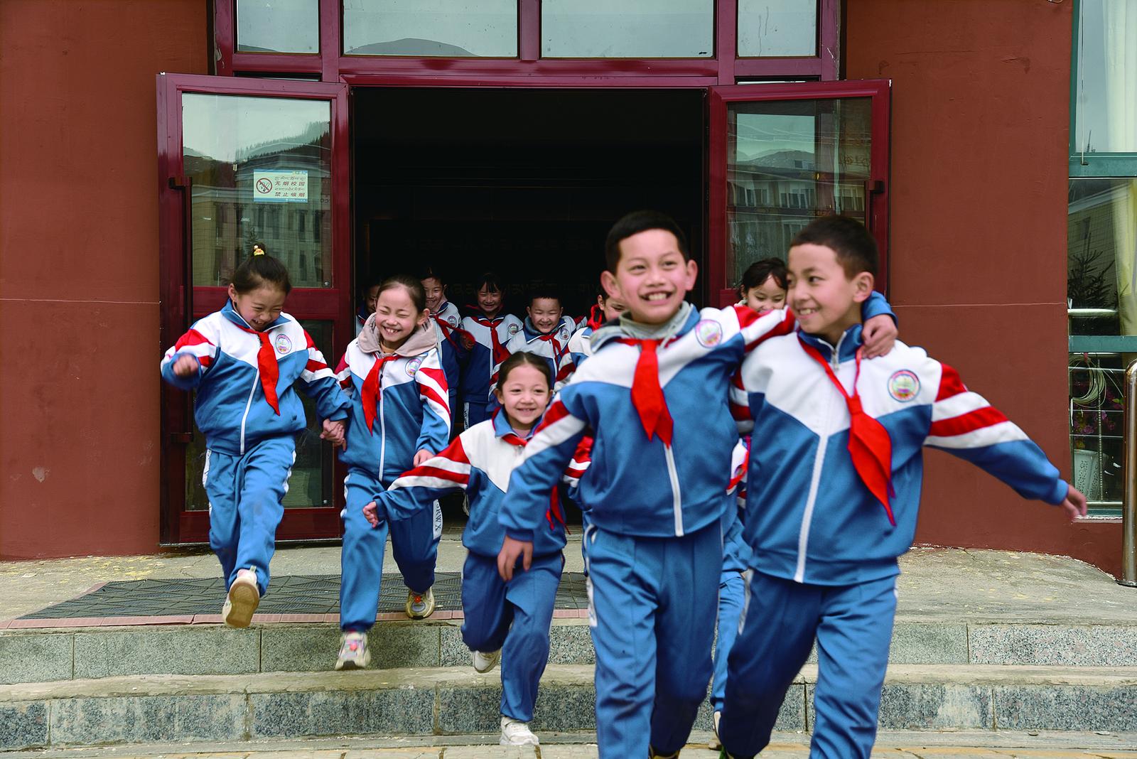 孩子们脸上洋溢着幸福的笑容。