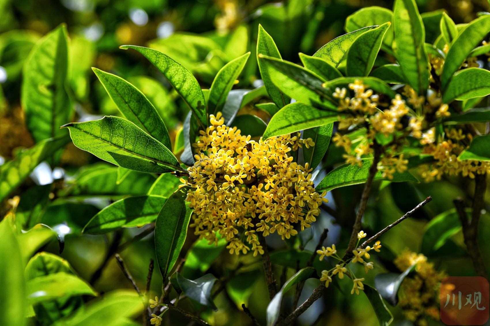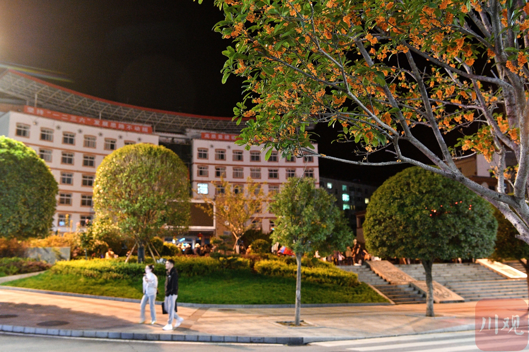 10月10日,记者在四川省阿坝藏族羌族自治州金川县看到,县城内的桂花已悄然绽放,为这座美丽的小城增添了一抹浓郁的秋色。