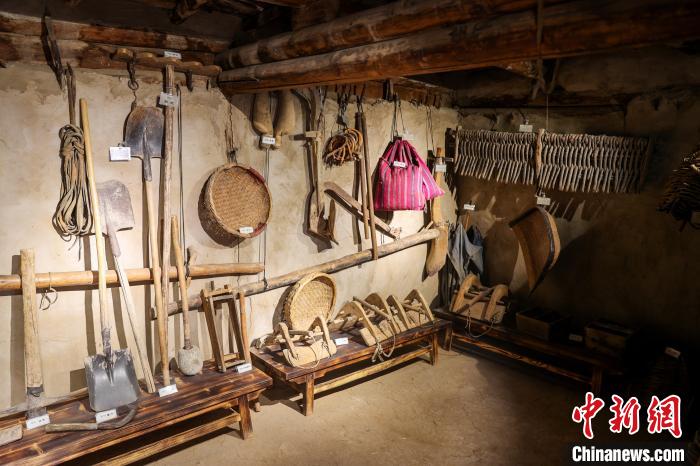 图为古堡内展示的农作用具。中新社记者 薛蒂 摄