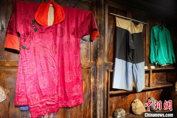 图为古堡内展示的民族服饰。中新社记者 薛蒂 摄