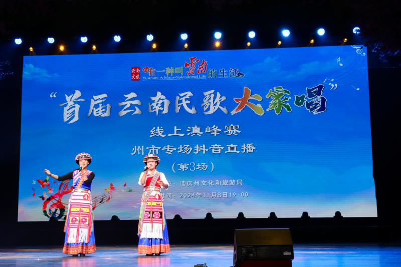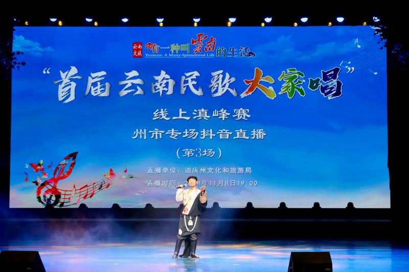 11月8日晚,“有一种叫云南的生活·首届云南民歌大家唱”线上“滇峰”赛迪庆专场优秀歌手表演直播在香格里拉剧院火热开启,助推“云南民歌大家唱”在抖音平台形成新的线上传播热点。《筑墙情歌》《梅里的呼唤》《梅里锅庄》《美丽的康巴姑娘》等一首首大家耳熟能详的经典迪庆民歌轮番上演,这些民歌或高亢嘹亮,或细腻含蓄,或轻盈婉转,或激情洋溢,赢得了直播间网友们的点赞评论。
