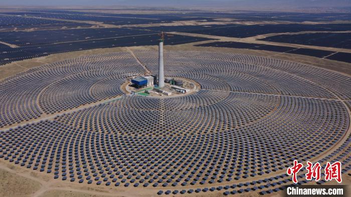 航拍青海中电建共和100万千瓦光伏光热项目10万千瓦光热电站。张忠苹 摄