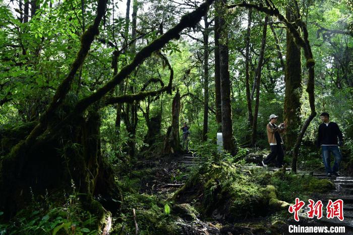 6月18日,记者走进位于四川省甘孜藏族自治州的海螺沟景区草海子探访。草海子是冰川雨林步游长廊的入口,处于山地暖温带针阔叶混交林带,是一处末次冰期古冰碛湖,湖岸是一片很大的原始森林,生长着各种珍稀植物,幽静神秘。丛林因季相变化而五彩缤纷,又被称为“五花林”。