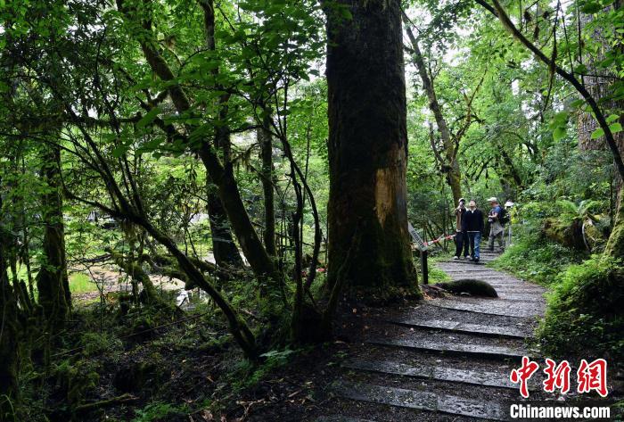 图为游客在丛林小道上游览。中新社记者 王磊 摄
