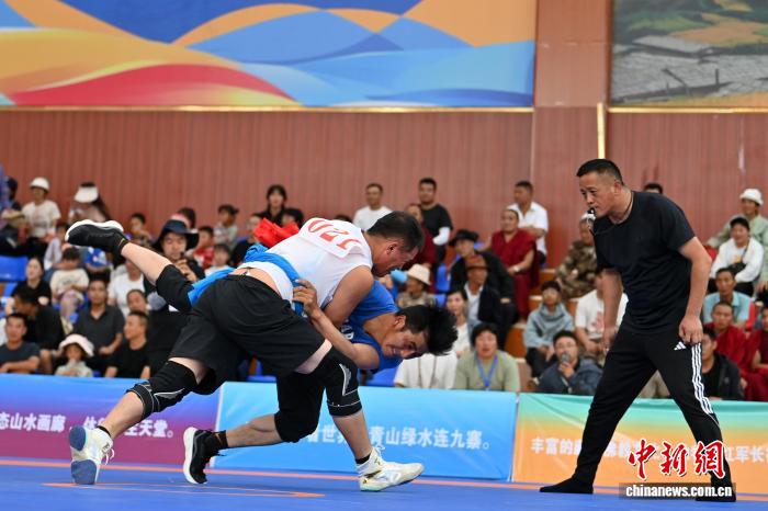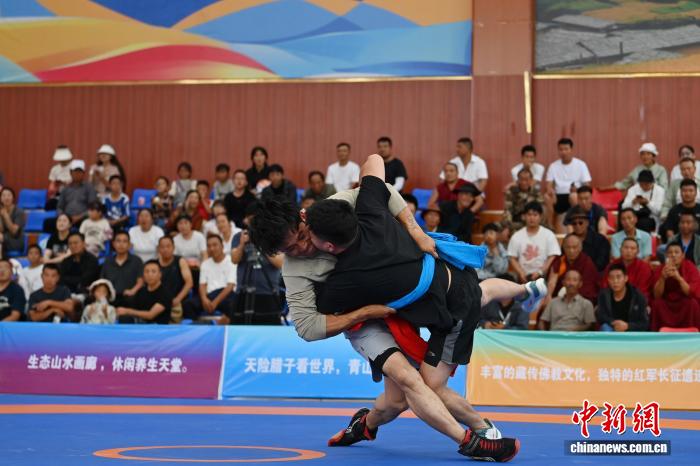 图为藏式摔跤比赛现场。中新社记者 九美旦增 摄