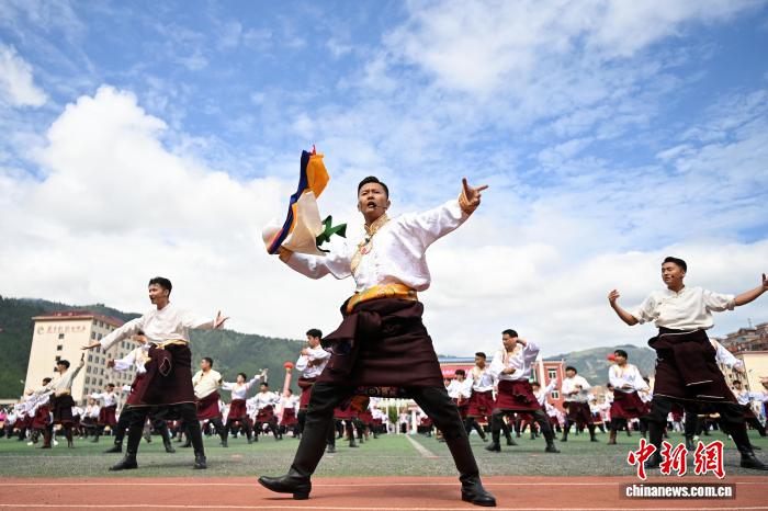 图为青海省泽库县参赛代表队入场。中新社记者 九美旦增 摄