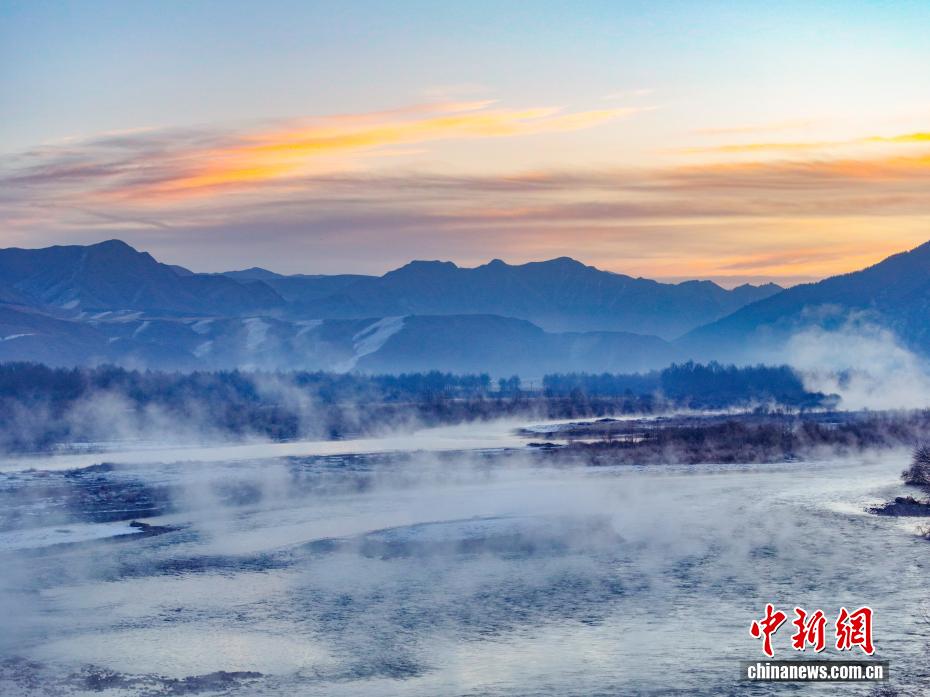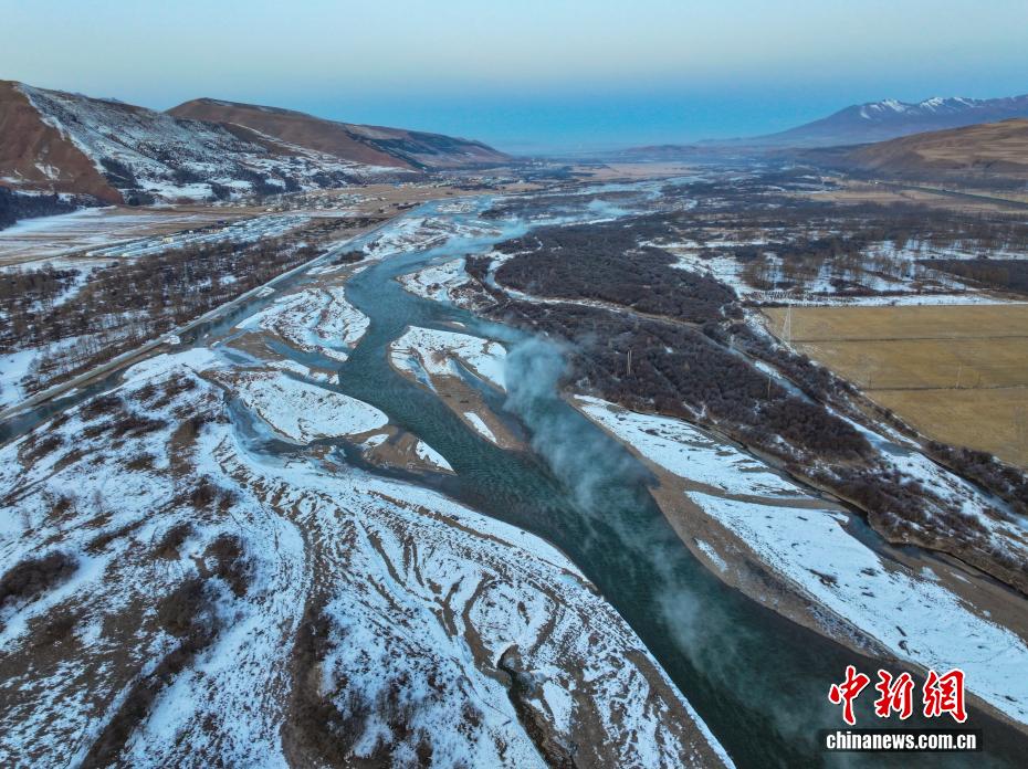 图为河面上白雾升腾。(无人机照片)中新社记者 马铭言 摄