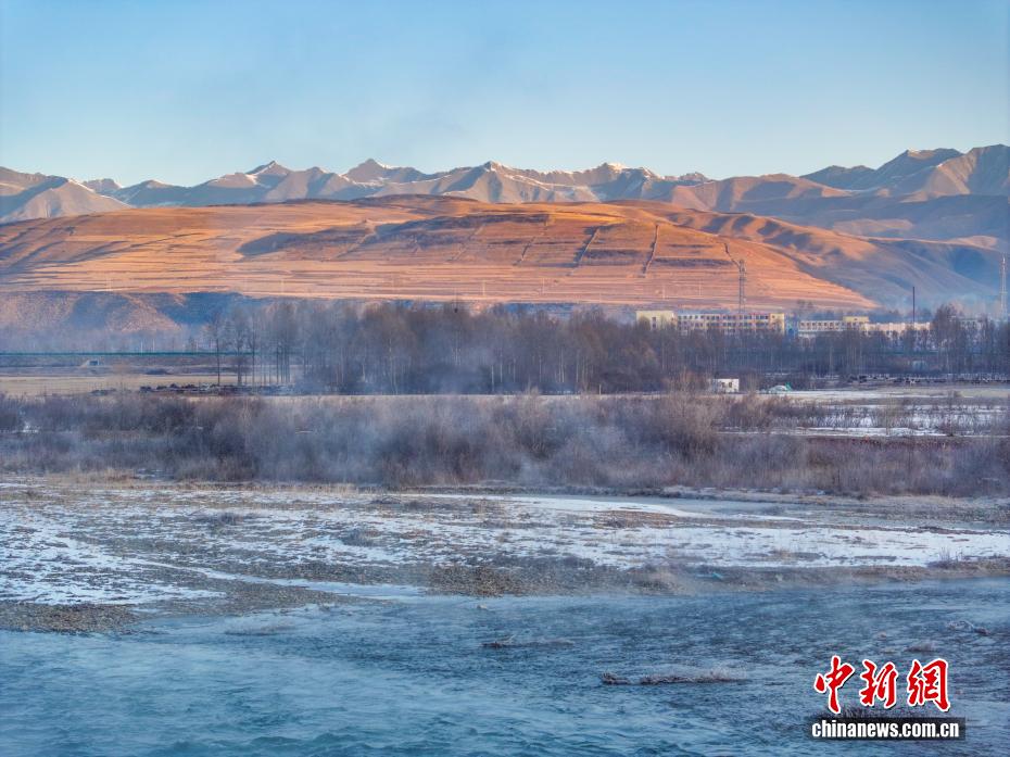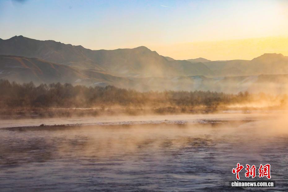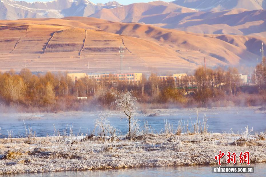 12月11日清晨,地处祁连山腹地的青海省海北藏族自治州门源回族自治县大通河河面上白雾升腾,与河畔雾凇相互映衬,朝阳下如梦如幻,尽显高原冬日之美。