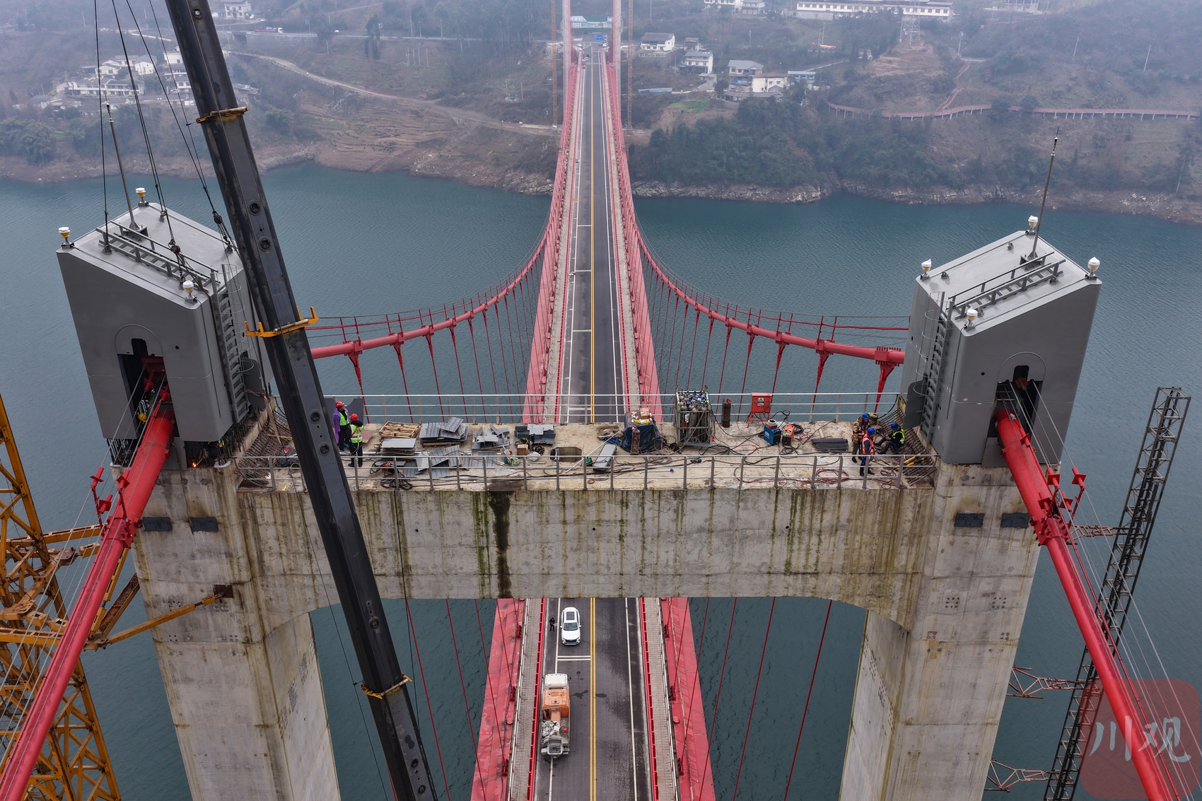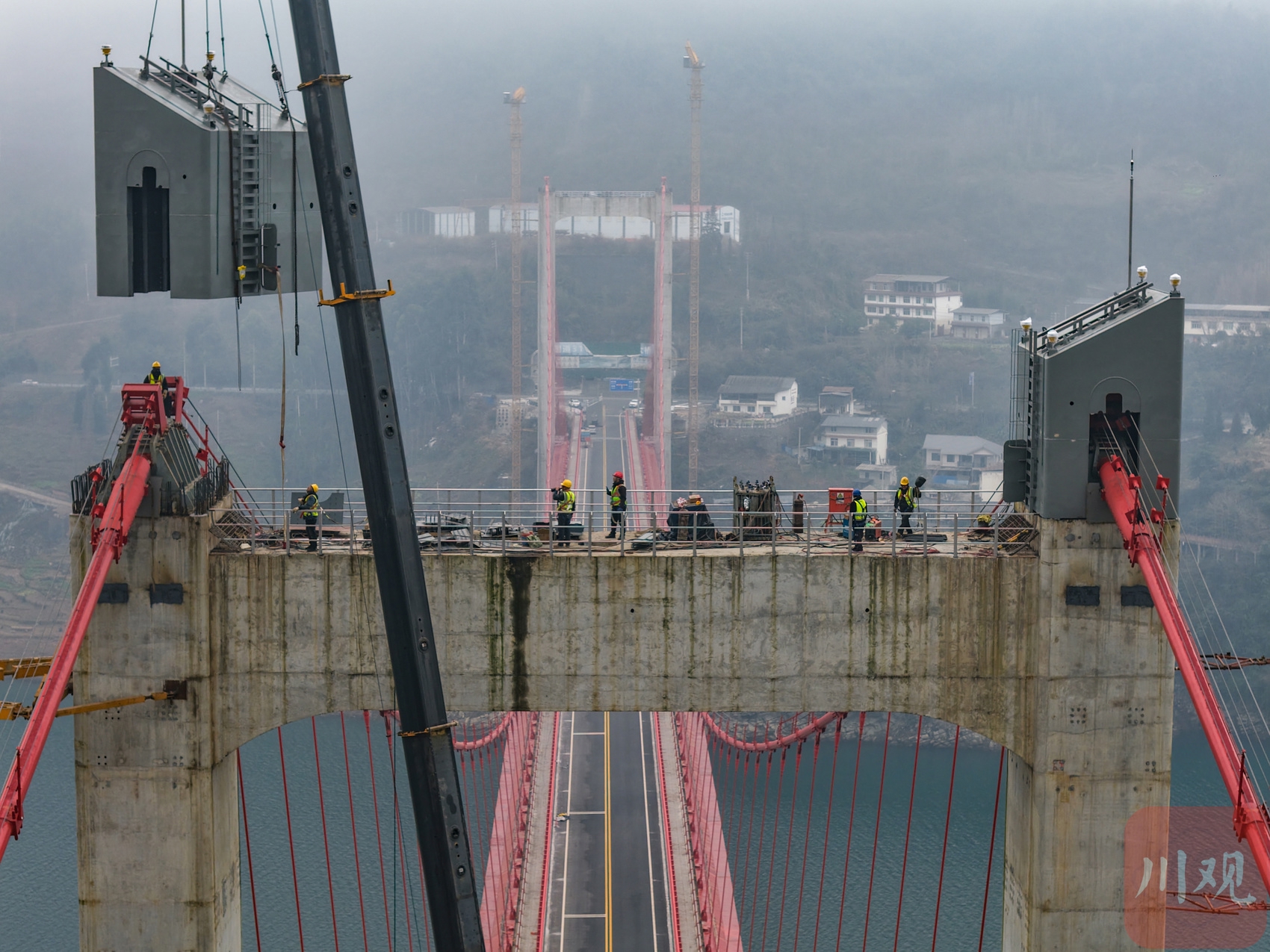 1月19日,由中交路桥建设有限公司承建的国道317线友谊隧道至汶川映秀段改建工程紫坪铺特大桥主塔塔冠吊装完成。全桥塔冠共4个,单个重量约11吨,安装完成后塔顶距地面高度约80m,现其主塔施工基本结束,近日将完成全桥施工。