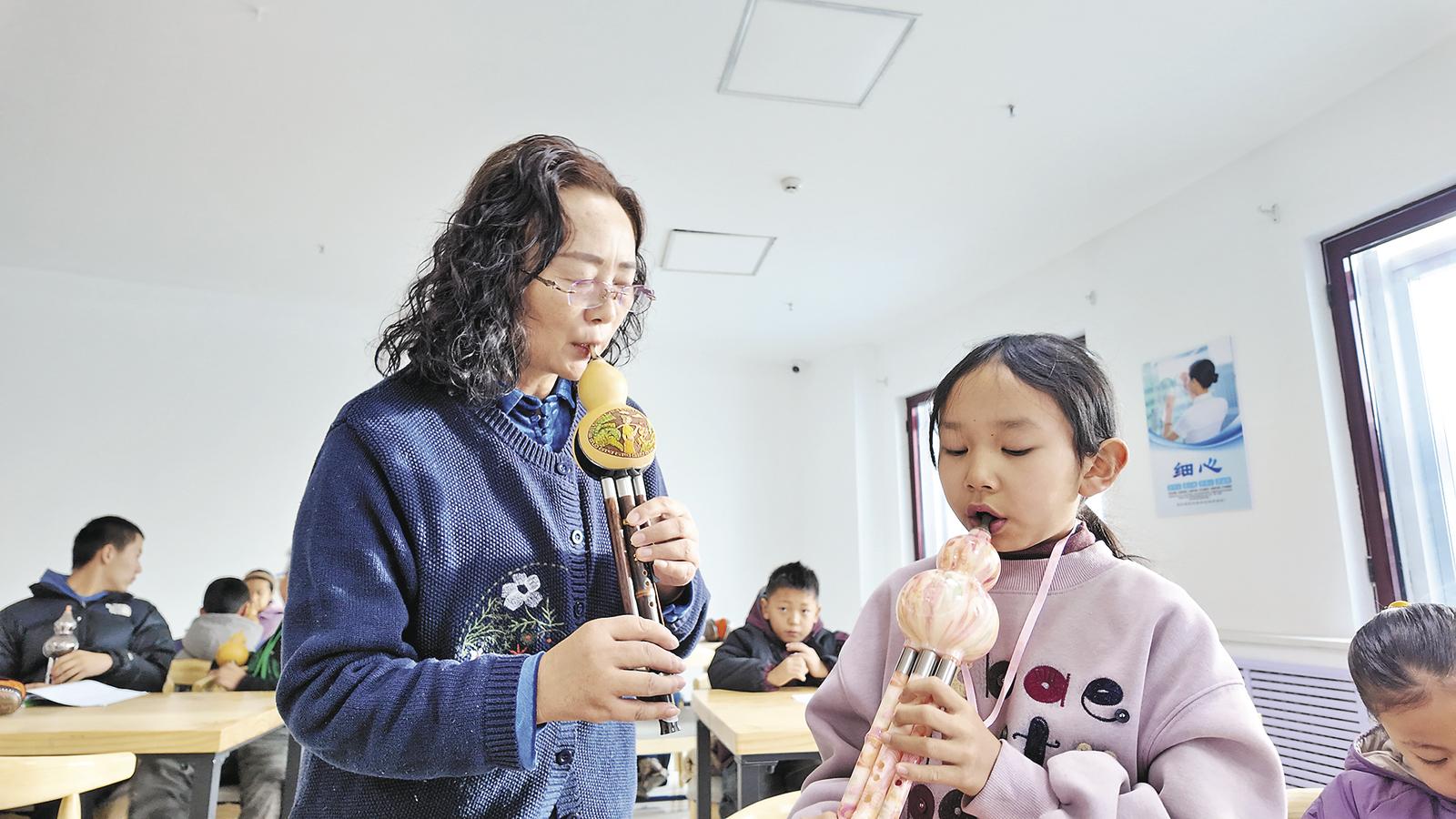 葫芦丝课上乐曲悠扬。顾植霞 摄
