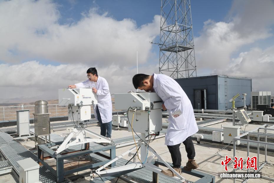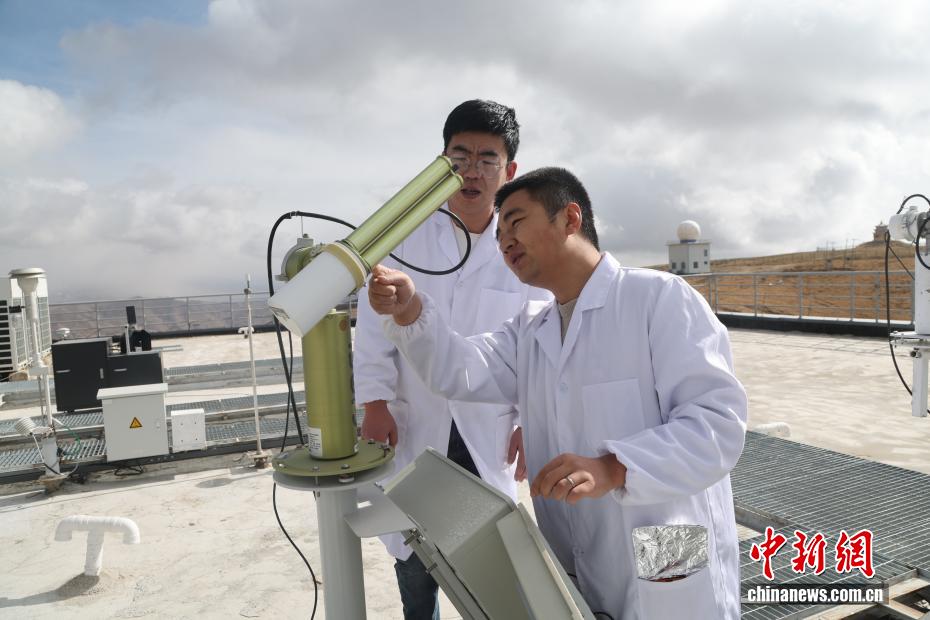 2月5日,位于青海省海南藏族自治州共和县的瓦里关全球大气本底站内,工作人员正在检查测量设备。中新社记者 张忠苹 摄