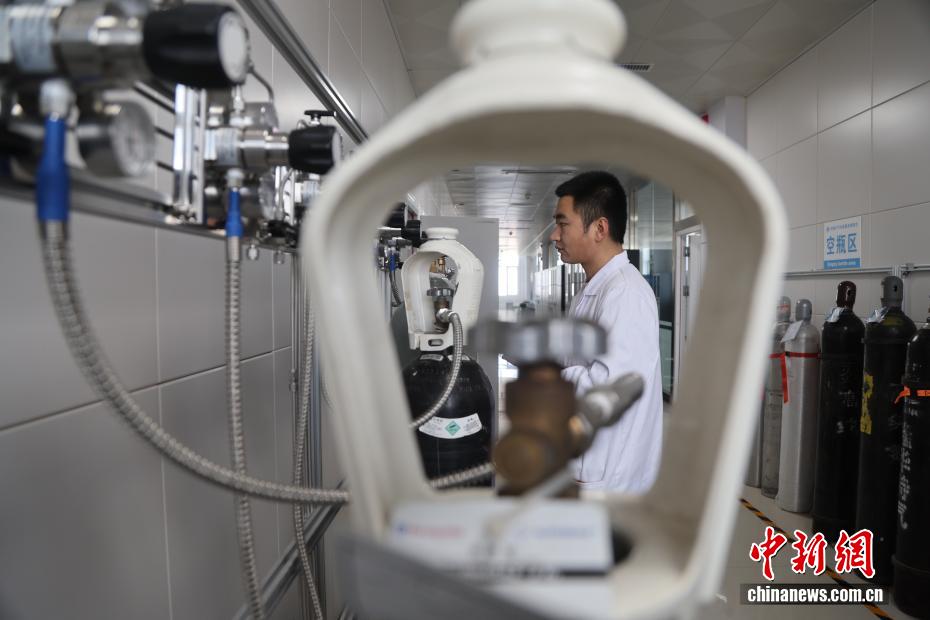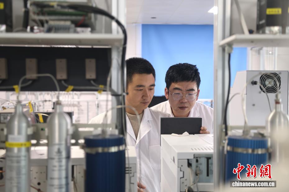 2月5日,位于青海省海南藏族自治州共和县的瓦里关全球大气本底站内,值班人员正在维护测量设备。中新社记者 张忠苹 摄