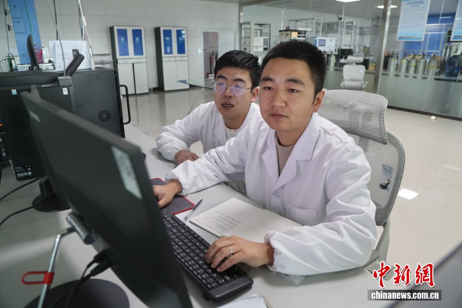 2月5日,位于青海省海南藏族自治州共和县的瓦里关全球大气本底站内,值班人员正在统计汇总测量数据。中新社记者 张忠苹 摄