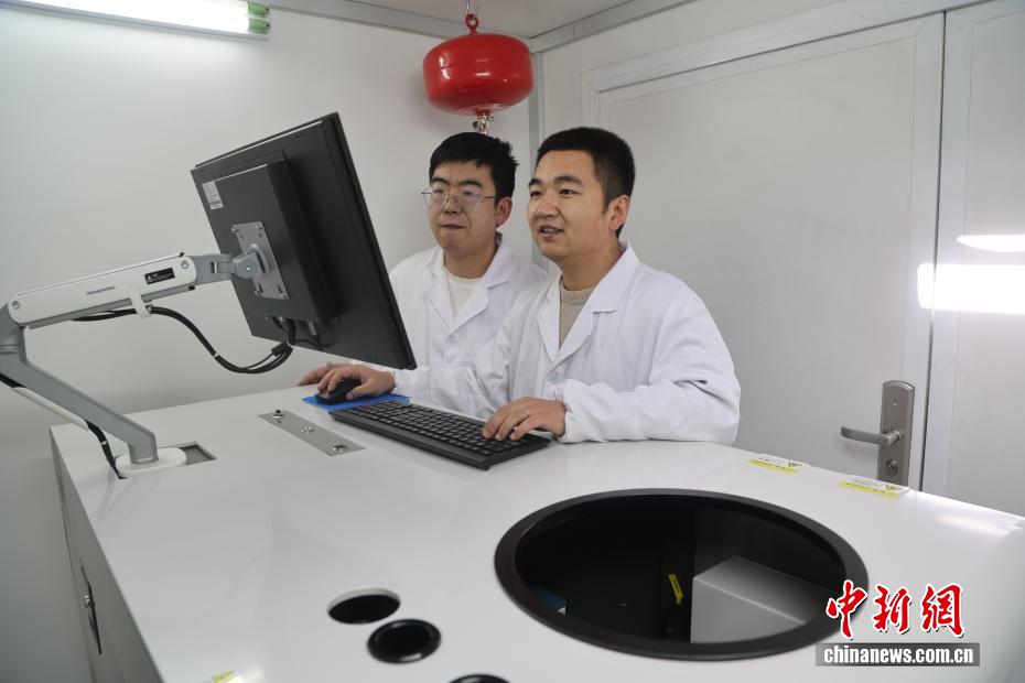 2月5日,位于青海省海南藏族自治州共和县的瓦里关全球大气本底站内,值班人员正在检查大气臭氧激光雷达收集的数据。中新社记者 张忠苹 摄