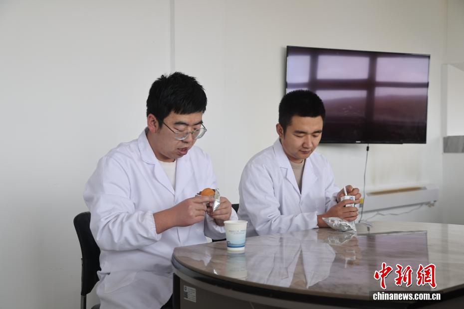 2月5日,在青海省海南藏族自治州共和县的瓦里关全球大气本底站,为了不影响观测数据的准确,站内全年不能做饭,只能以简餐代替。中新社记者 张忠苹 摄