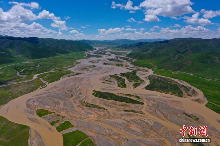 资料图为2023年7月28日,航拍青海省果洛藏族自治州达日县黄河辫状水系。马铭言 摄