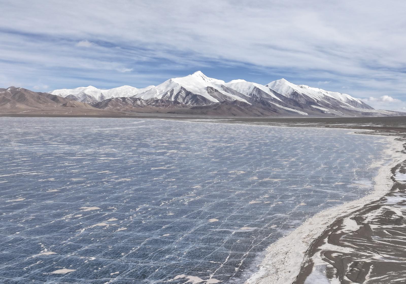 早饭是热奶茶和白饼。茶灌进肚子,寒意才真正被压下去。车队出发,朝勒斜武旦湖方向行进。下午1时许,远远望见一片开阔的冰面,太阳湖到了。