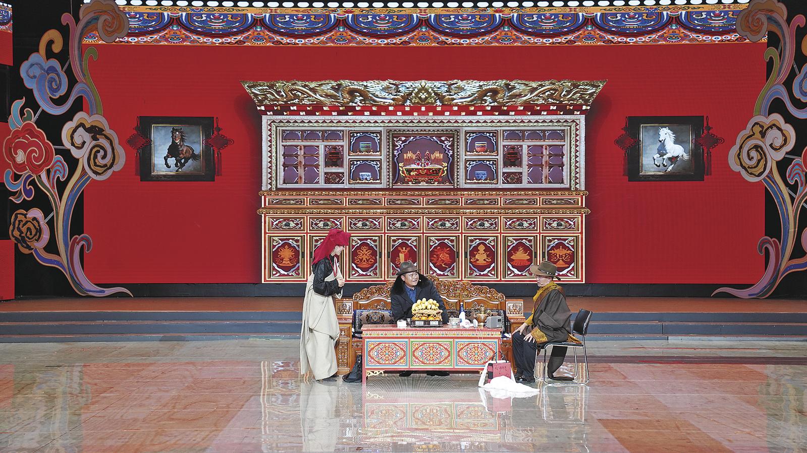 李处尖措等表演的小品《幸福之年》,用生活化场景与接地气台词,展现新时代高原农牧民群众收入提高、生活幸福、日子红火的场景。
