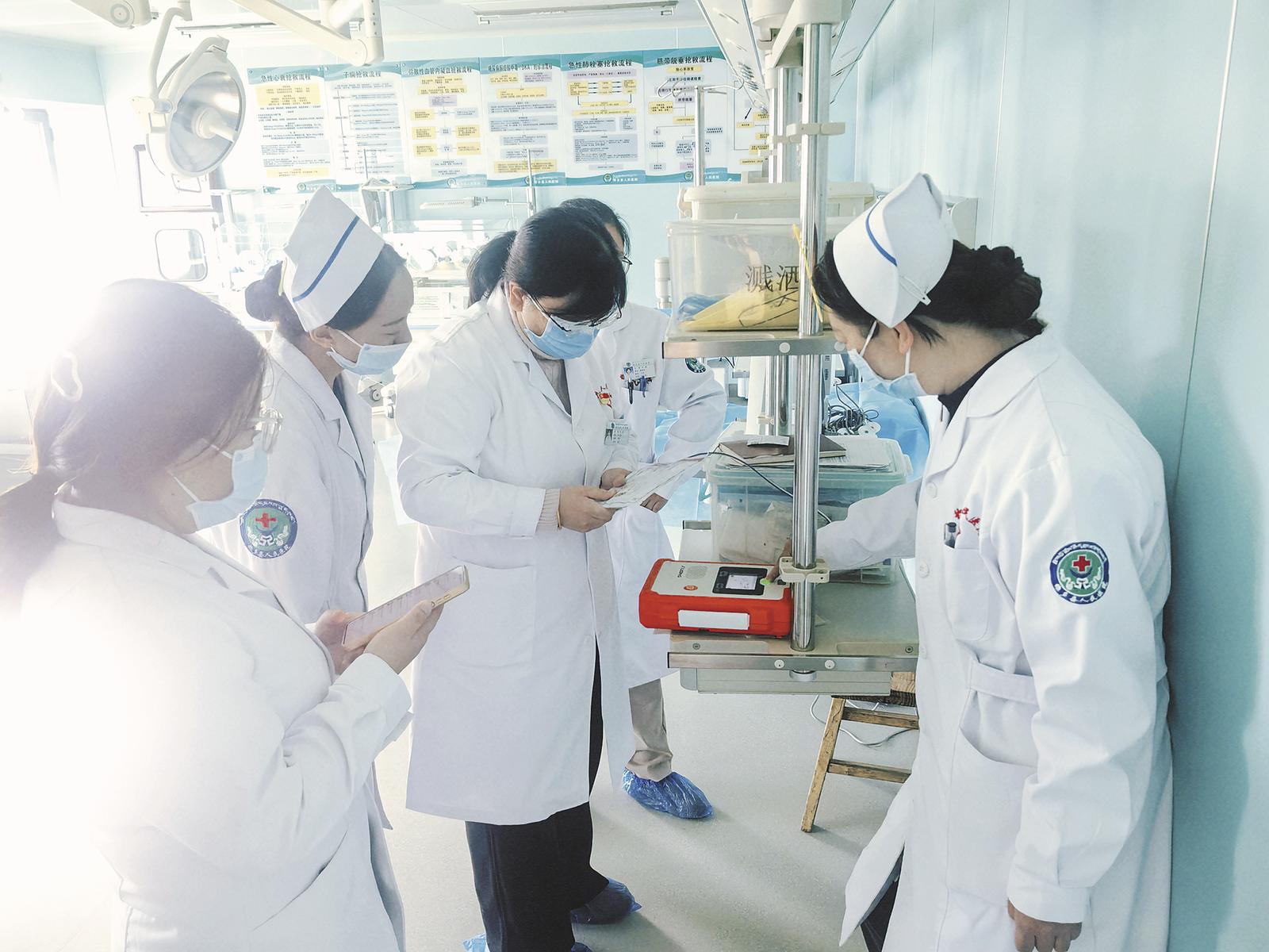 徐连那在医院开展日常医疗器械检查(左三)。徐连那供图