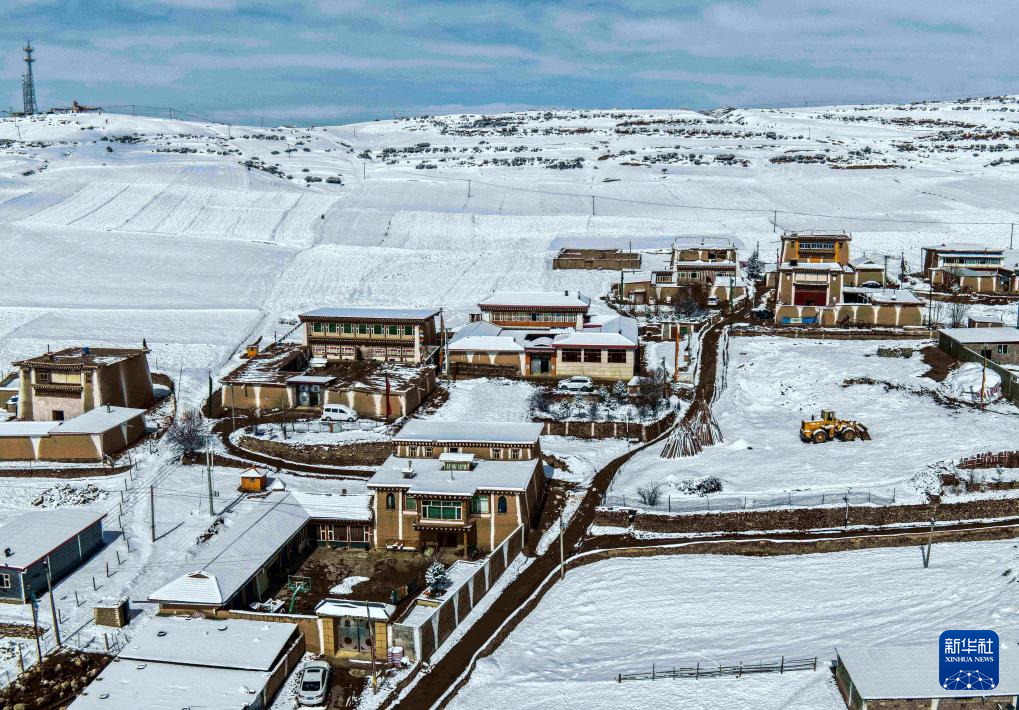 3月14日拍摄的阿坝县安多民居雪景(无人机照片)。新华社发(米林摄)