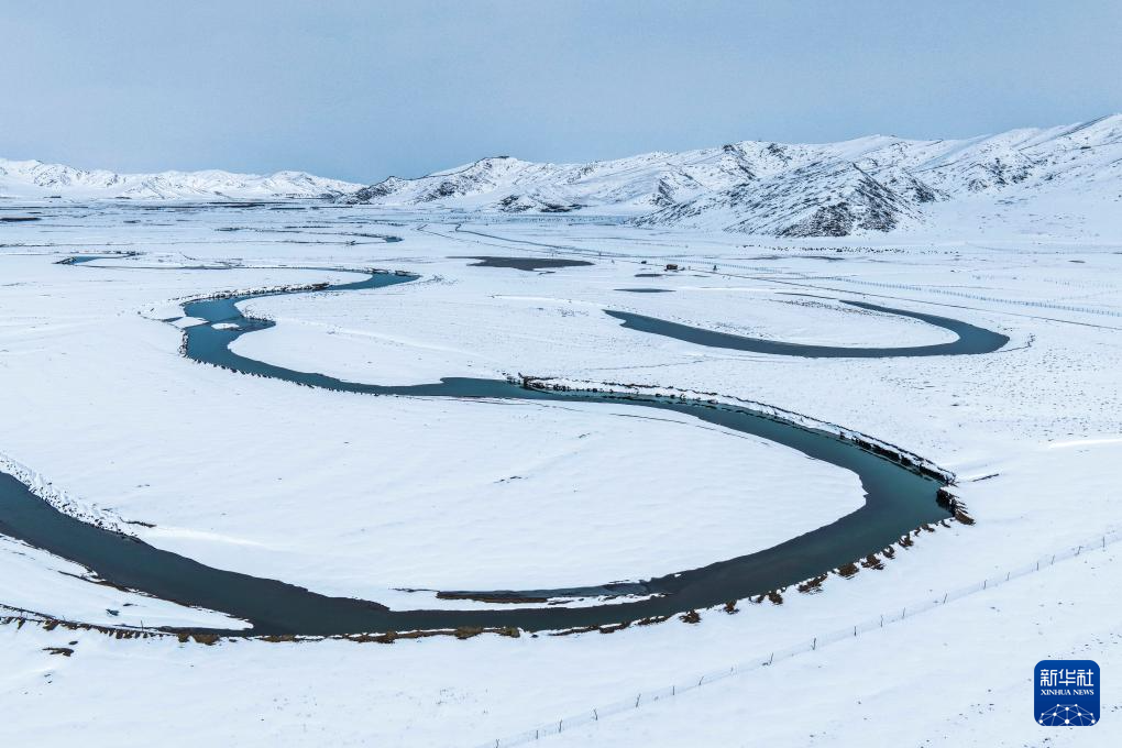 3月14日拍摄的阿坝县草原雪景(无人机照片)。新华社发(米林摄)