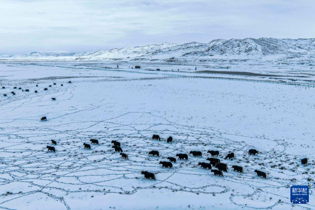 3月14日拍摄的阿坝县牧场雪景(无人机照片)。新华社发(米林摄)
