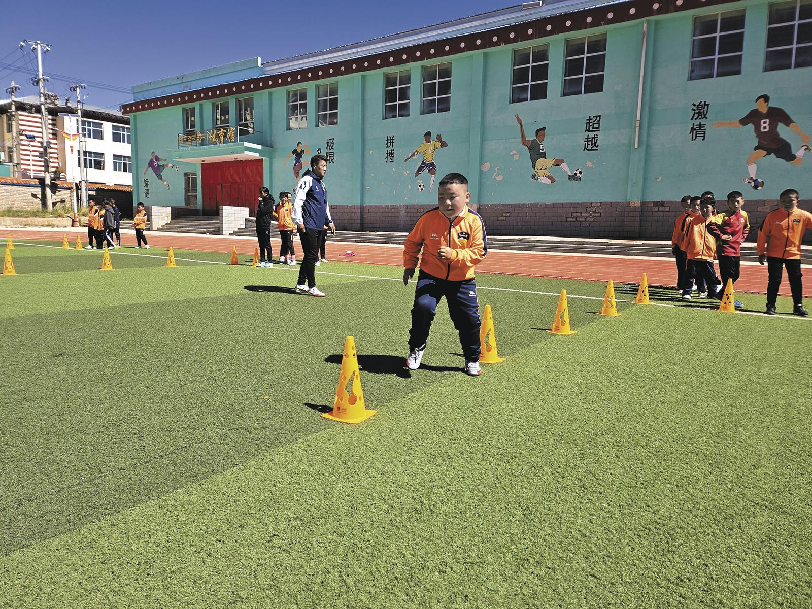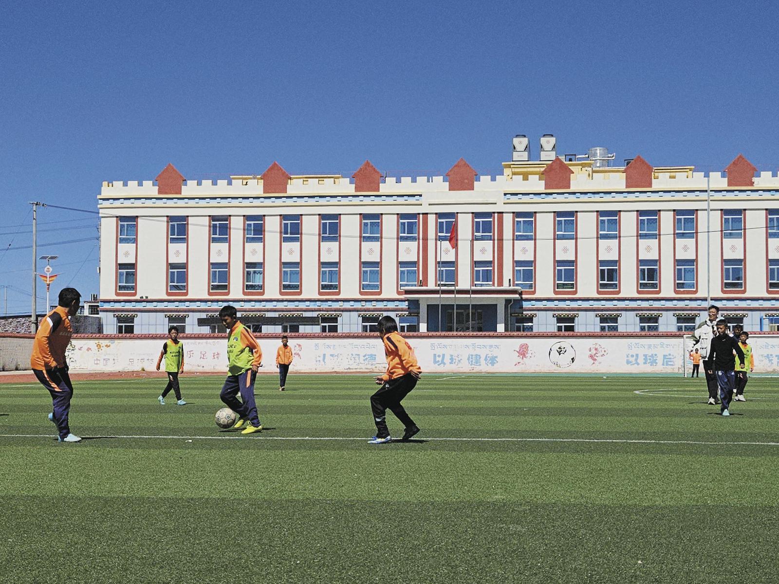 针对4.7万常住人口分散在5.24万平方公里牧区的特点,曲麻莱创新打造“1个核心青训中心+13所校园训练网点”格局,实现全县中小学足球全覆盖。