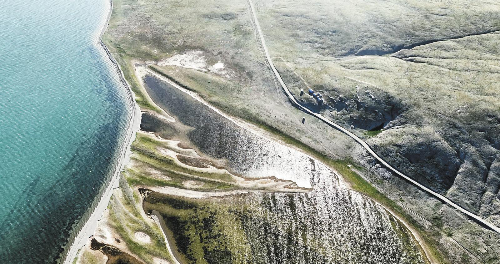 2025年7月25日拍摄的“尕日塘秦刻石”所在地青海省果洛藏族自治州玛多县扎陵湖北岸(无人机照片)。 新华社记者 杜笑微 摄
