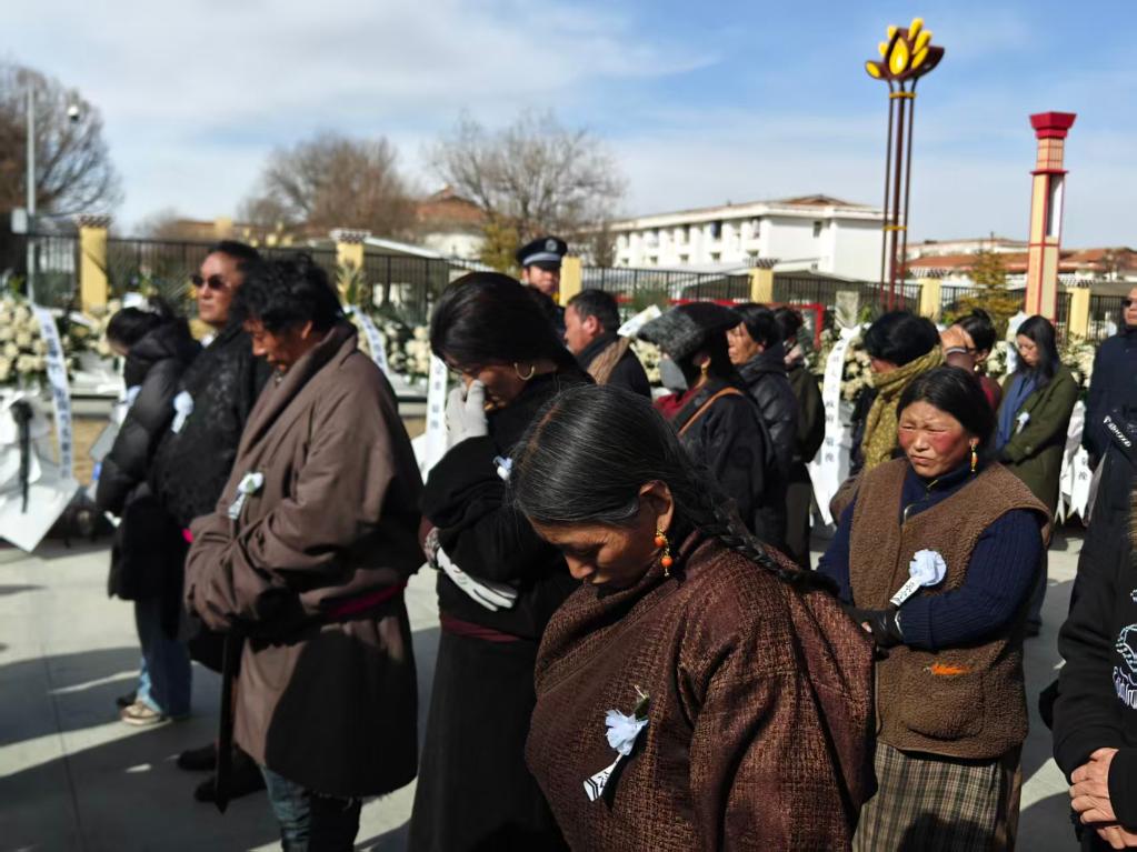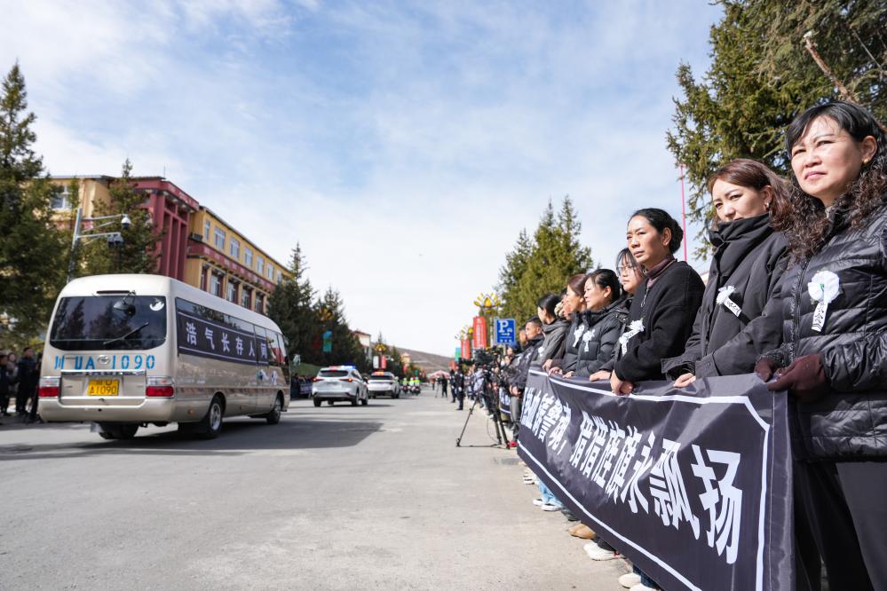 3月20日,红原县干部群众参加额旺格拉同志追悼会。新华社记者 王曦 摄