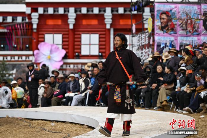 图为村装秀现场康巴汉子展示藏族服饰。中新社记者 刘忠俊 摄