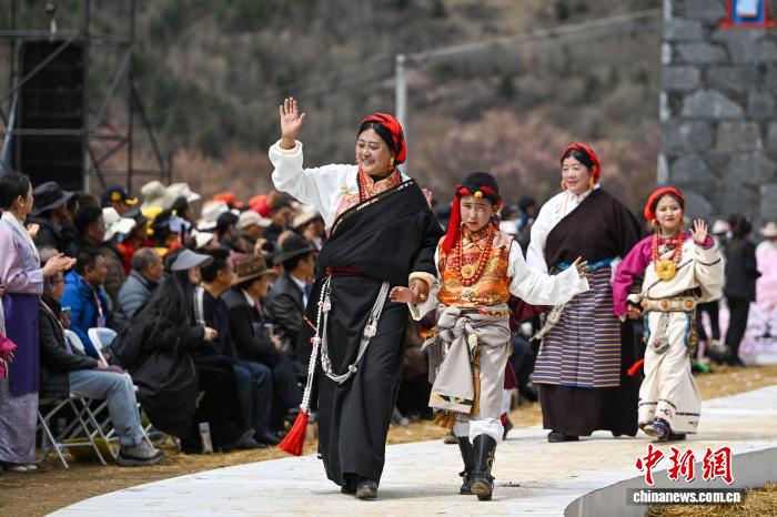 4月2日,四川省甘孜藏族自治州道孚县首届杏花生态文化体验周启幕。杏花林间的T台上,一场精彩的村装秀上演,民族服饰与春日杏花交相辉映,吸引不少藏族群众和游客驻足观赏、定格美好瞬间。