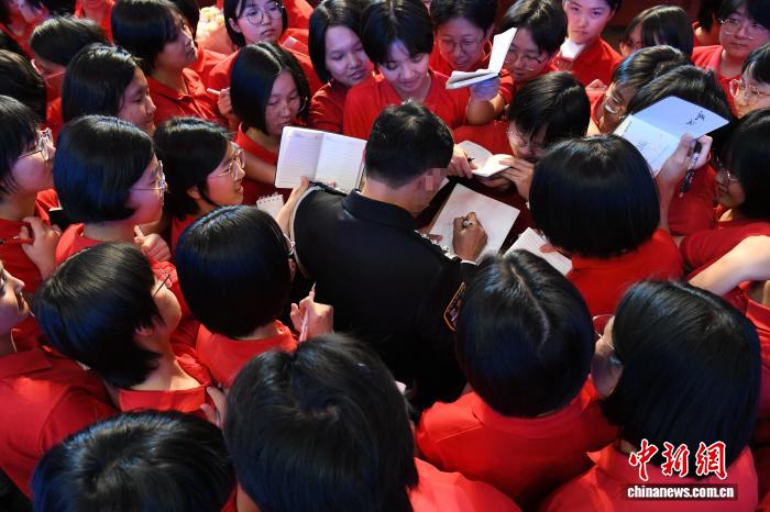 4月7日,报告会结束,洛桑扎西与女高学子互动。活动主办方 供图