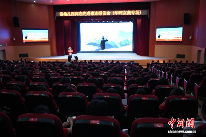4月7日,洛桑扎西同志先进事迹报告会(华坪女高专场)现场。赵庆祖 摄