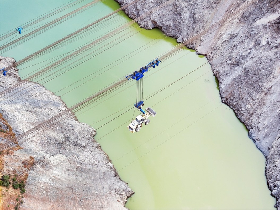 在施工效率与作业适配性方面,缆索吊系统能够适配大跨度、高落差的极端施工场景,且不受库区水位季节性大幅波动影响,可实现点对点精准运输。