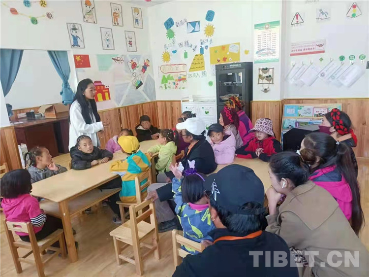 图为俄达门巴村幼教点老师、学生及家长学习《家庭教育促进法》