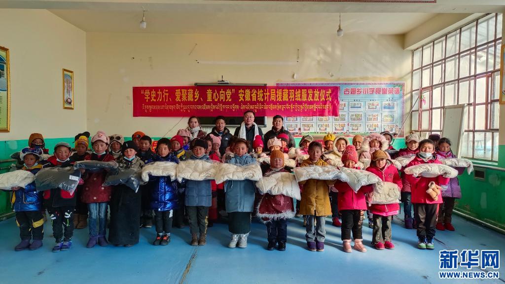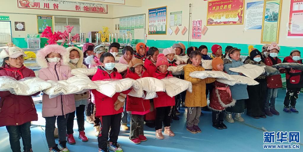 “孩子们,排好队,快到食堂去领羽绒服。” 央吉措姆老师高兴地对一年级的学生说道。待孩子们来到食堂,这里已是热闹一片。看到挂着“学史力行、爱聚藏乡、童心向党”爱心羽绒服发放仪式的横幅,孩子们才恍然大悟,原来是援藏的叔叔给他们送新羽绒服来了。