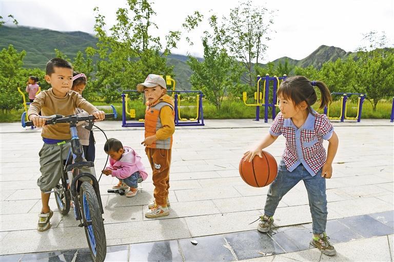 图为山南市加查县冷达乡共康村的孩子们在干净整洁的广场上玩耍。记者 李洲 摄